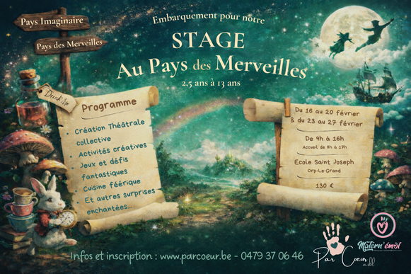 Les stages ont lieu à l’école Saint Joseph de Orp-Le-Grand. Le prix du stage est de 130€ ( 120€ pour une deuxième inscription de la même famille). Ils se déroulent de 9h à 16h avec possibilité de garderie de 8h à 9h00 et de 16h à 17h (2€/ période de garderie/enfant).